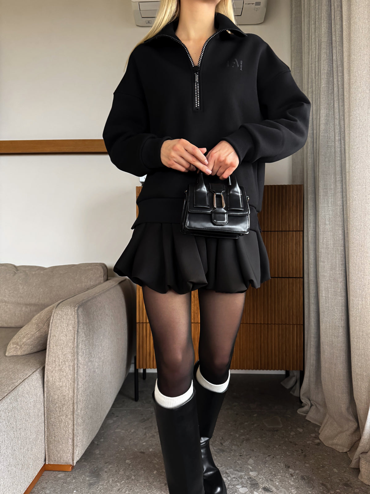 BLACK DIAMOND ZIP - old money stiliaus džemperis su pūkeliu viduje, puoštas prabangiai žėrinčiu užtrauktuku apykaklėje ir minimalistiniu, švelniai blizgiu Little match logo…