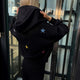 Krūtinės srityje mažas minimalistinis baltas matinis logo.